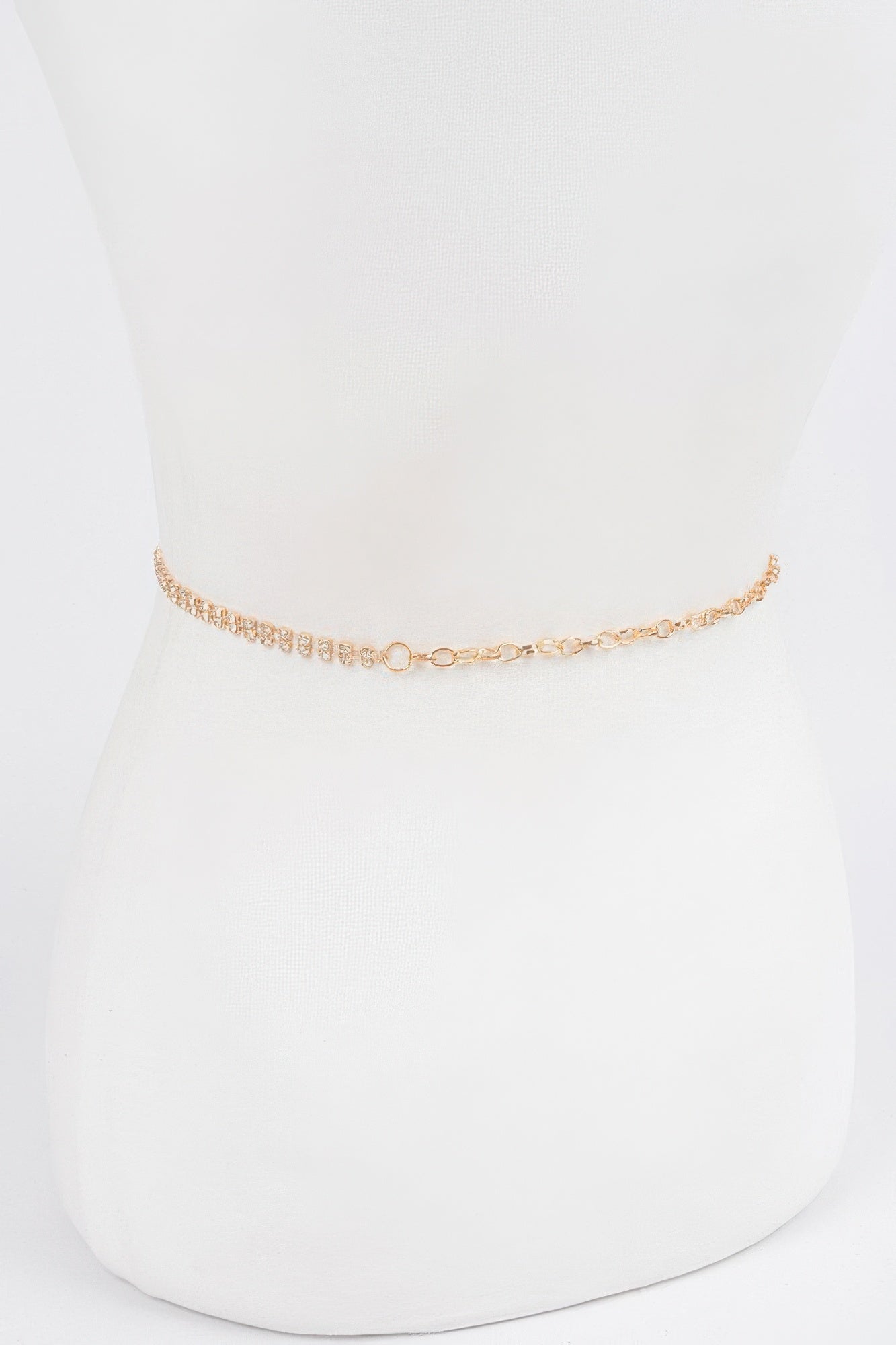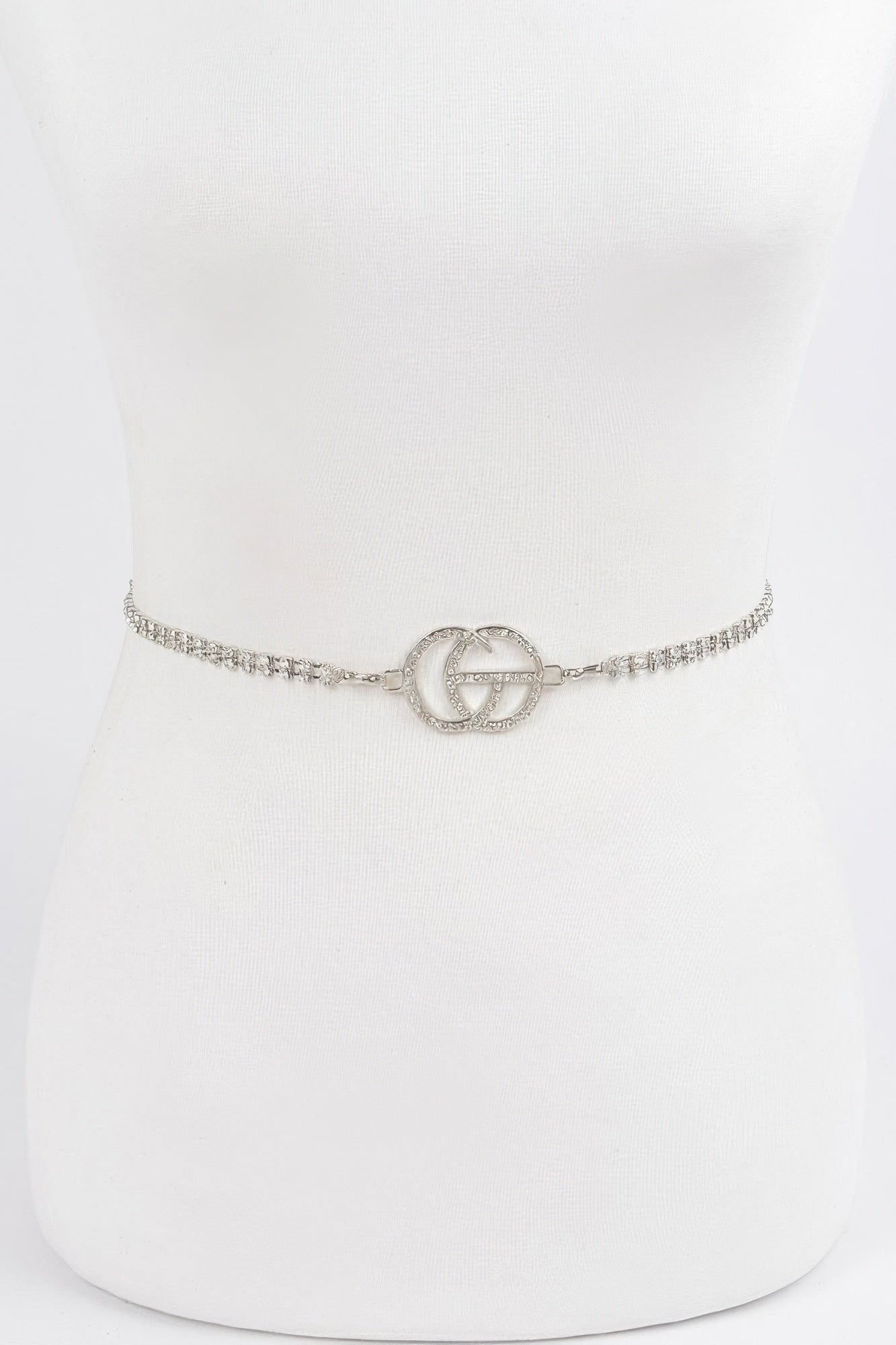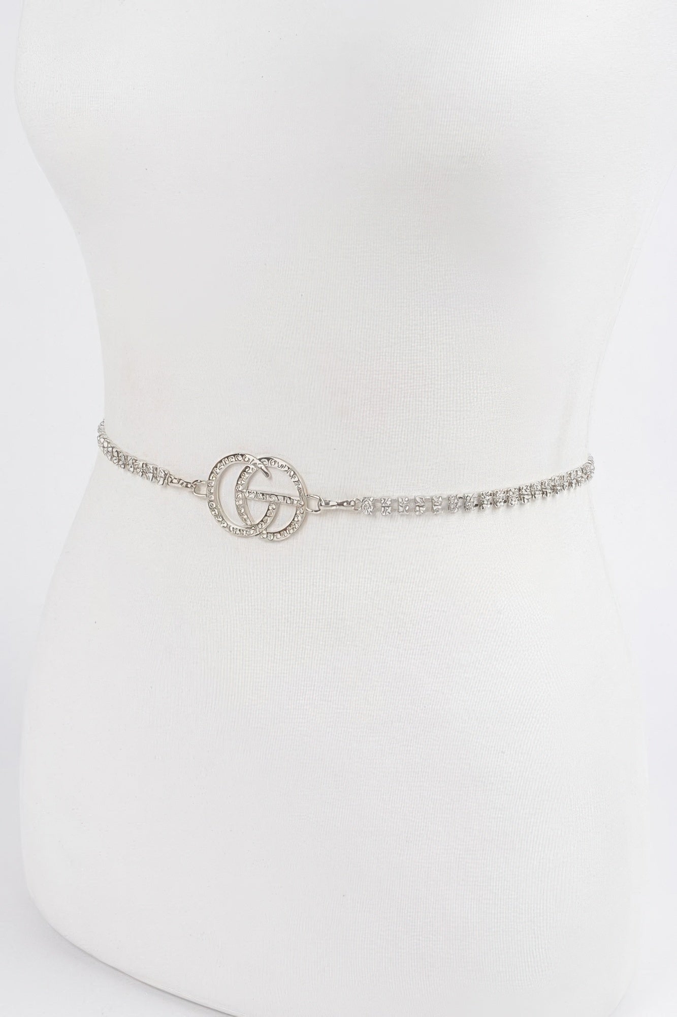 Shine with confidence in the Rhinestone Metal Chain Belt, a glamorous accessory designed to elevate your look with refined sparkle. Featuring a sleek chain design and chic G logo accent, this belt is embellished with shimmering rhinestones that catch the light from every angle. Crafted from durable iron, it offers a sturdy yet stylish fit with a 1.25" width and 45" length. Whether layered over a dress, skirt, or tailored trousers, this statement belt adds a luxe finishing touch to any outfit.